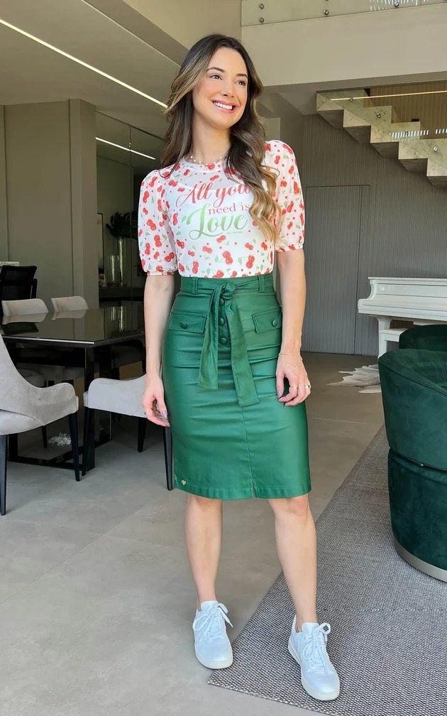 Saia Tatá Martello Silmara é confeccionado no bengaline resinado com elastano. Sua modelagem evasê com cós valoriza sua silhueta de forma impecável. Apresenta lapela de bolso falso e botões encapados, de tamanho médio, fixo na vista não funcional, super elegante com toque delicado. Acompanha faixa para amarração, fechamento em zíper posterior.